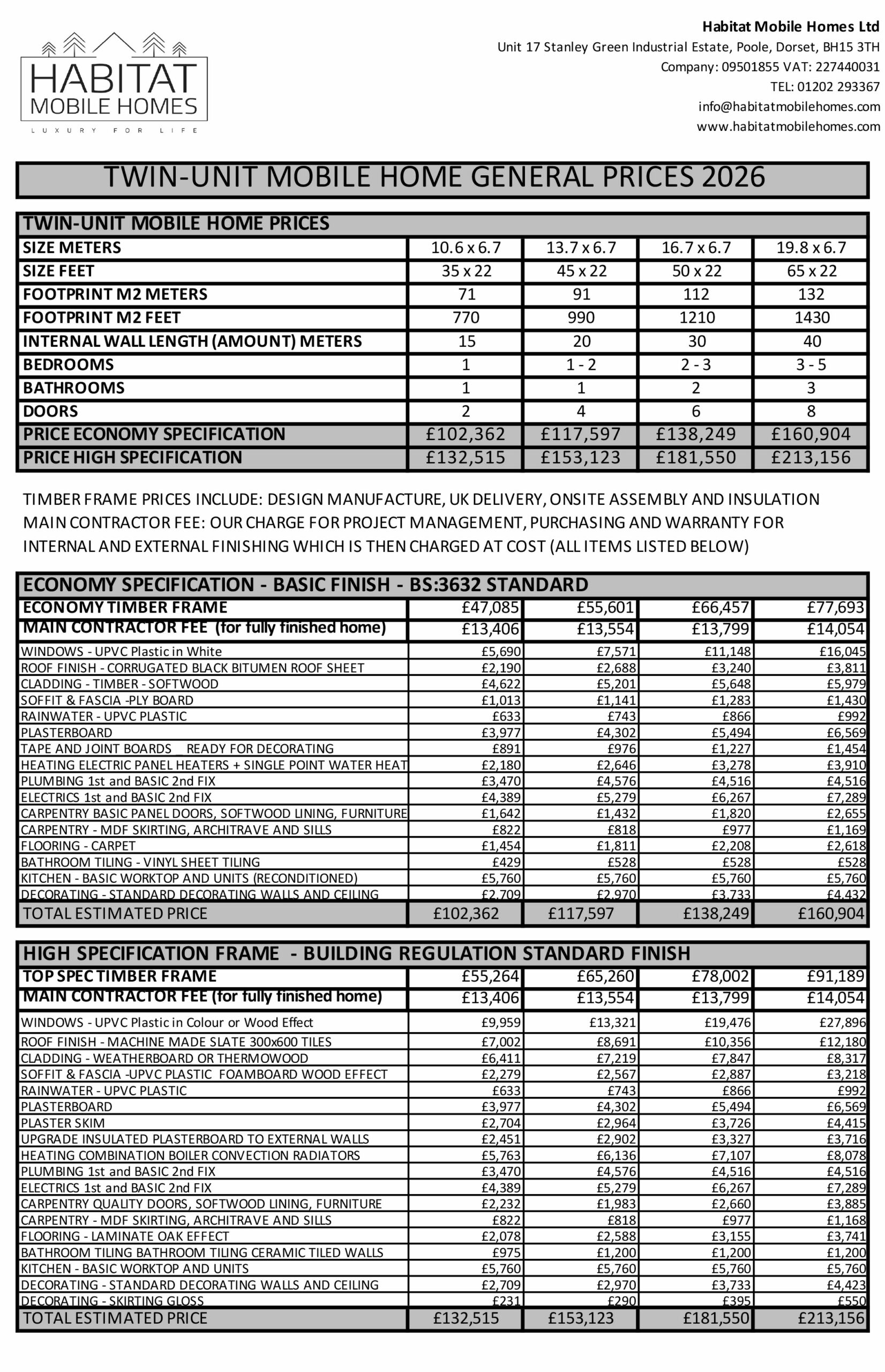 General Price List below. Many customers choose JUST THE TIMBER FRAME and DIY the finishing themselves, the Timber Frame prices are shown individually, Contractor fee (for project manage, supply labour , purchasing and warranty) is NOT charged for just frame packages, that applies when you want us to conduct the internal and external finishing too. Materials are then charged Pay-As-You-Go at cost price from the suppliers you choose. This is called a 'Cost Plus' building contract as it the best way to conduct a development. Please can see more details of the DIY package here: